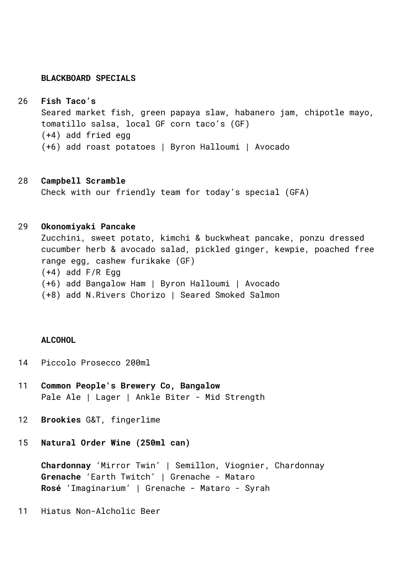 CAFE MENU